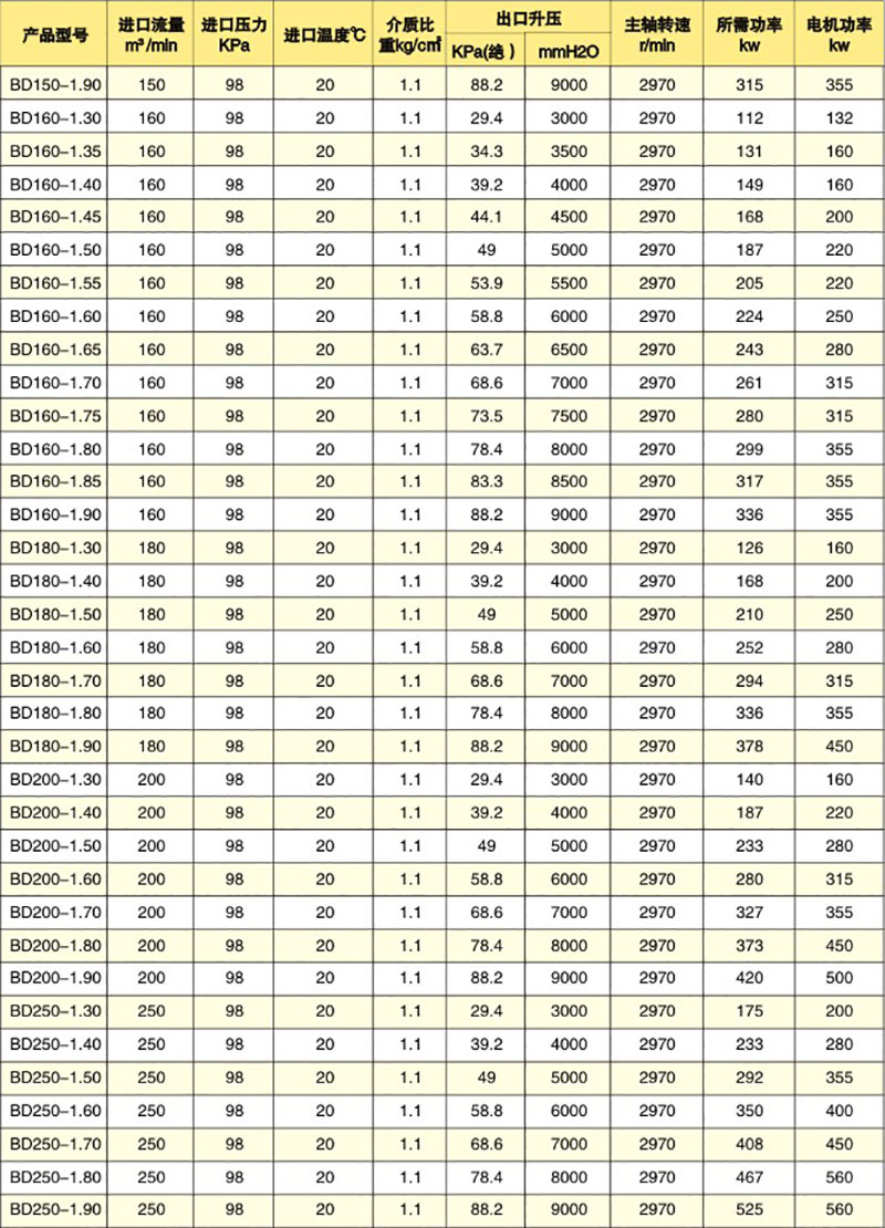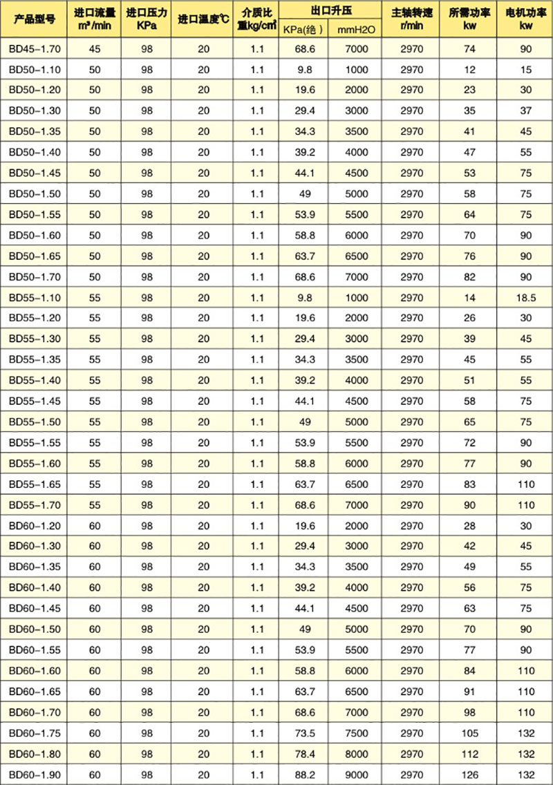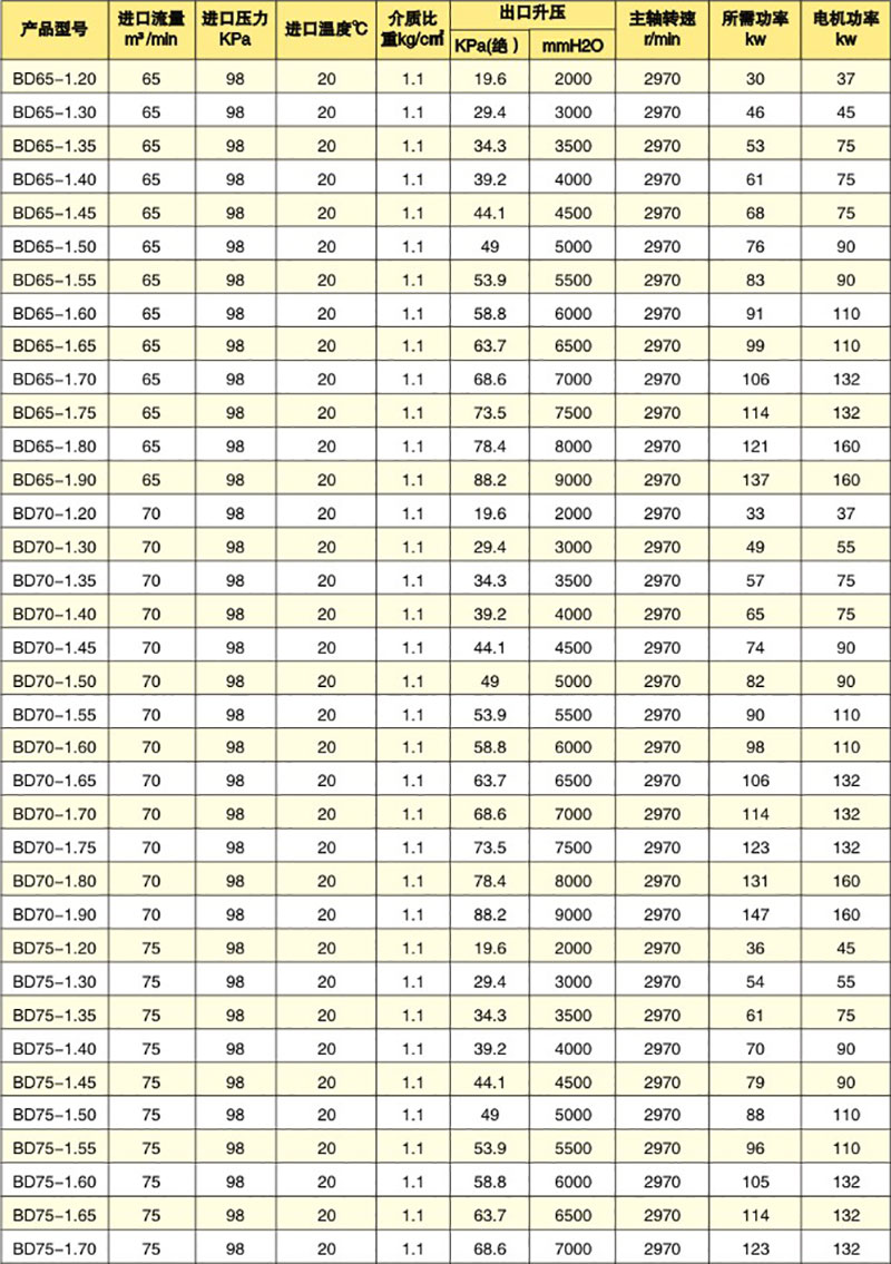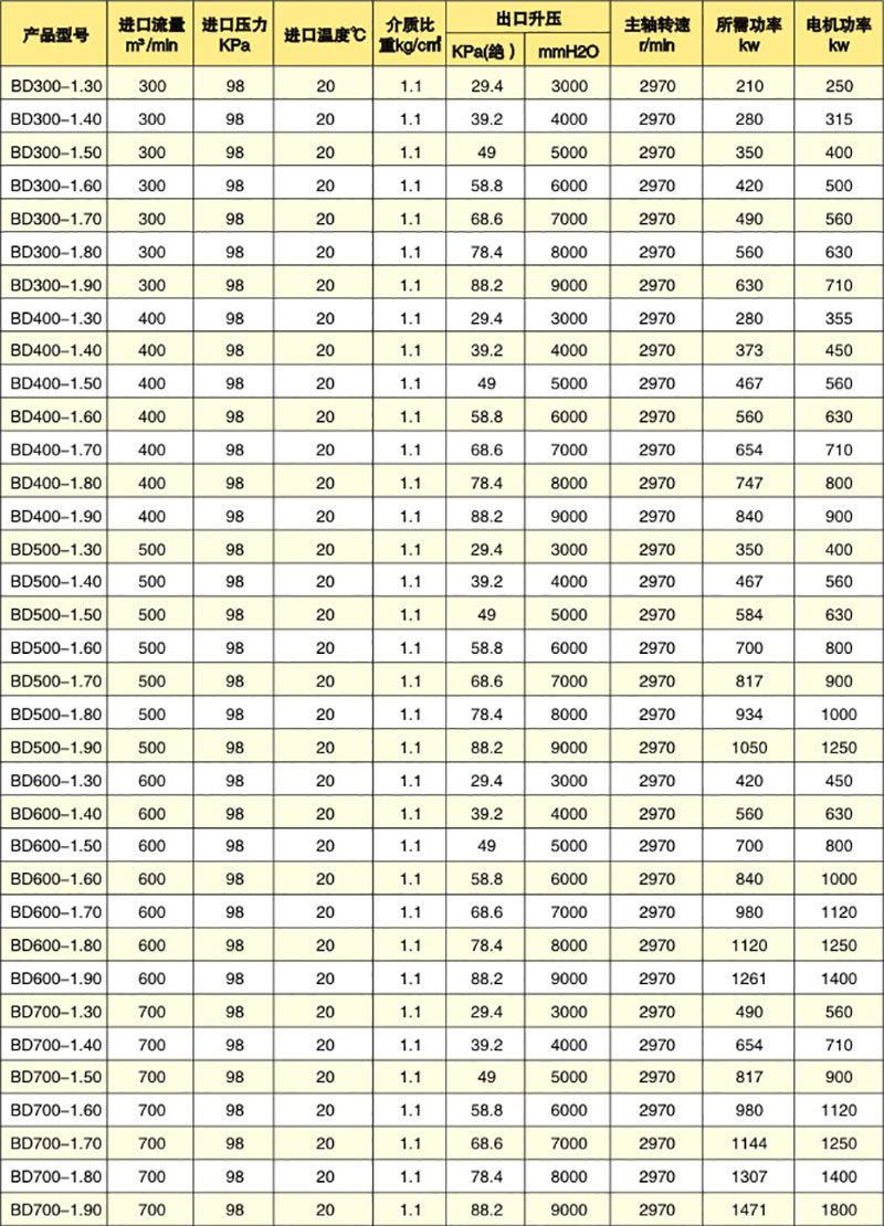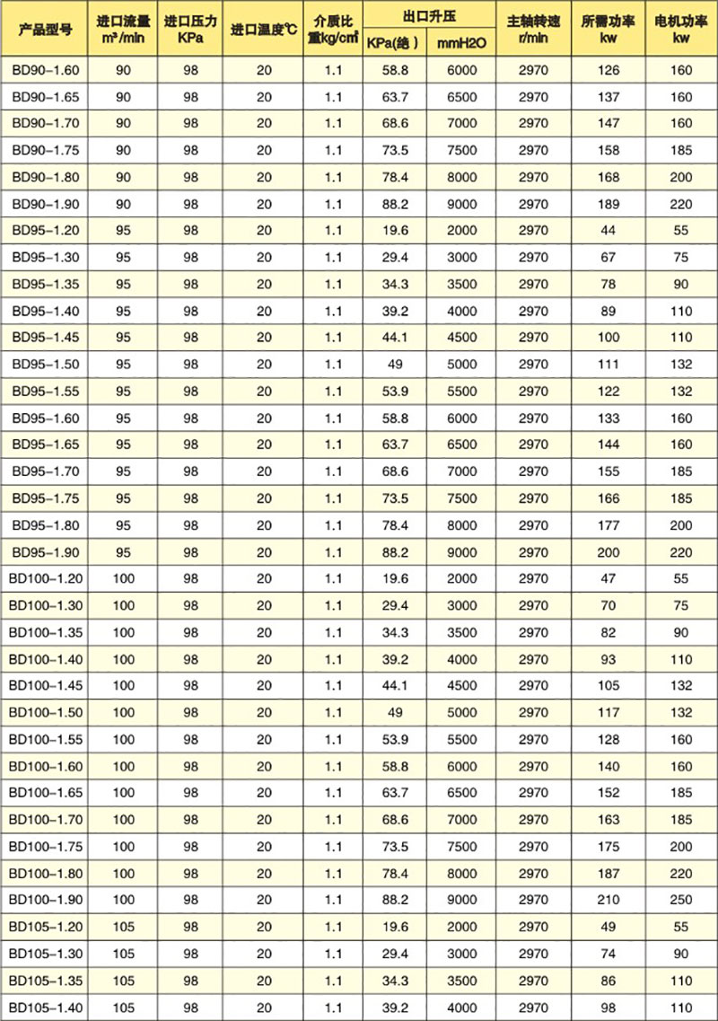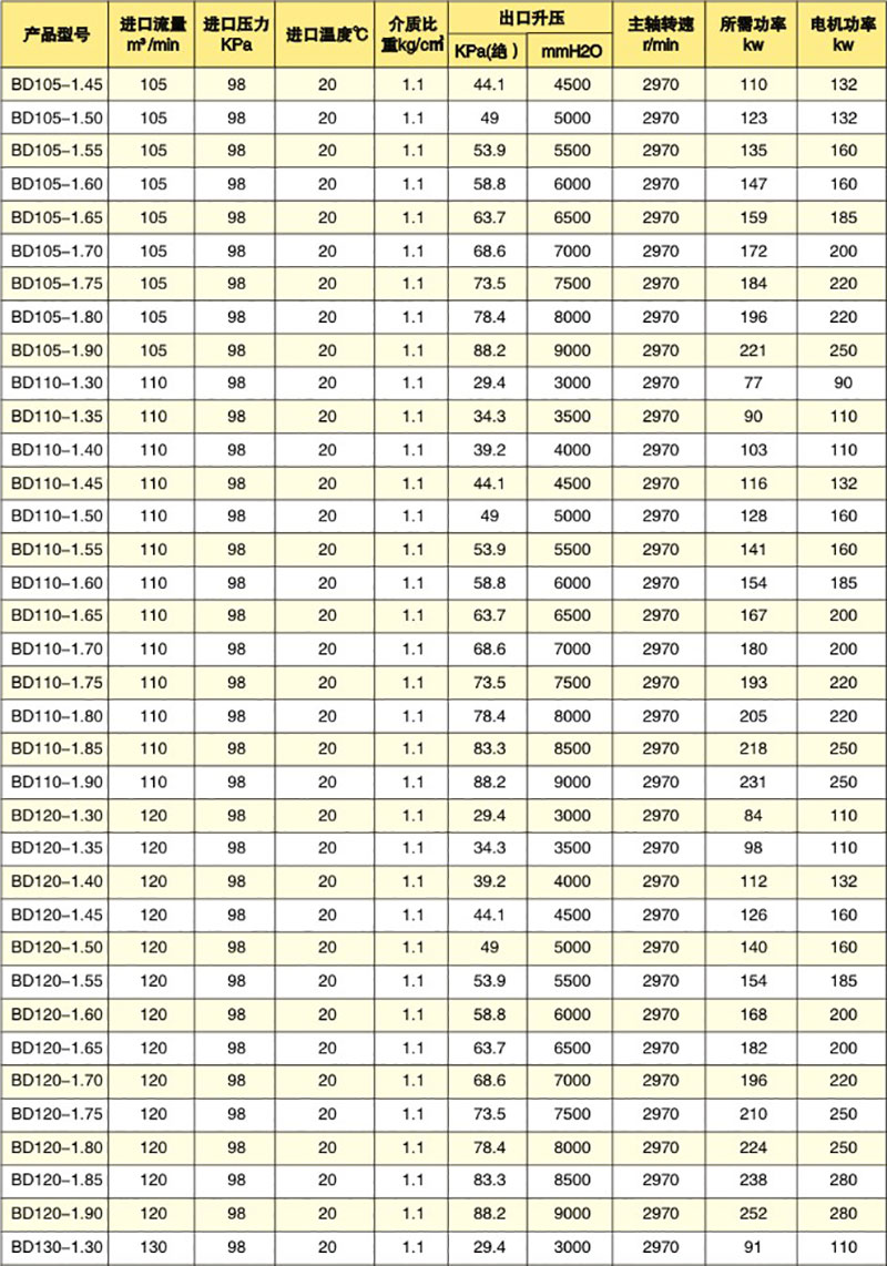 電動機為鼓風機的驅(qū)動配套設備,標準配置采用IP44或IP54普通電機。特殊需要時可采用戶外型、防爆型、防塵型、防水型等電機,在沒有電力的場合,也可以用發(fā)動機或蒸汽渦輪機驅(qū)動。BD系列傳動方式為皮帶傳動;BD系列傳動方式為聯(lián)軸器直接傳動。