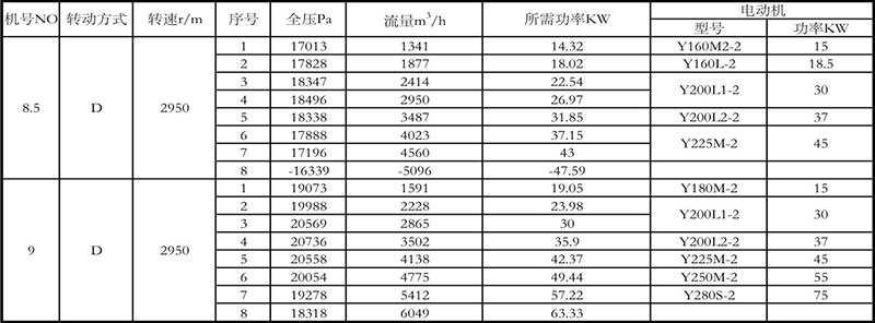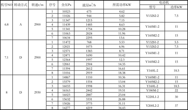 8-09 high pressure centrifugal fan performance parameters table