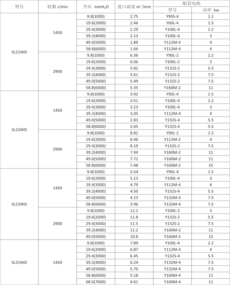 風(fēng)機(jī)升壓:9.8-98kPa